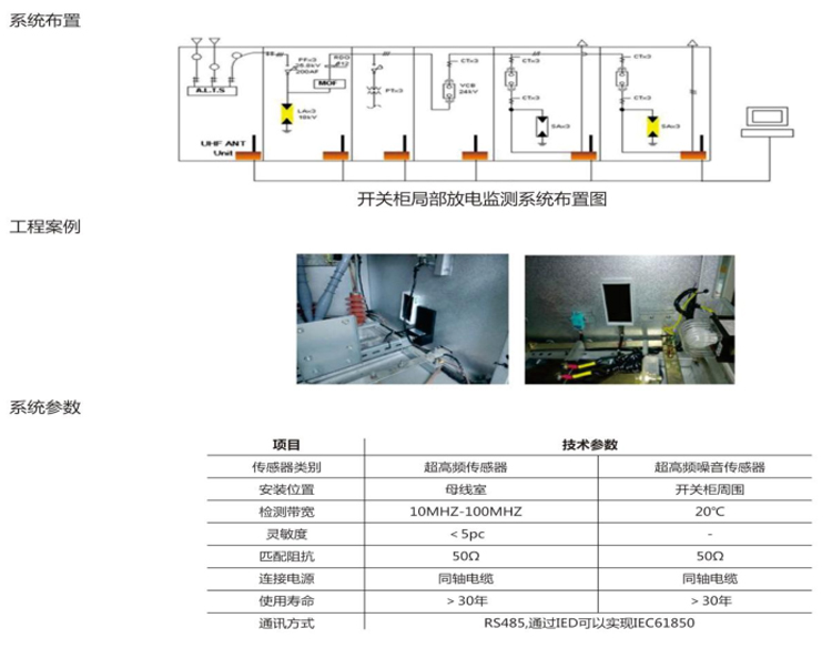 ZD600型开关柜局放在线监测系统通过检测伴随局部放电而产生的电磁波辐射,系统扫描10~100MHz频率范国内的电磁波辐射并自动确定现场局部放电的实际检测频率,随后将检测数据以局部放电脉冲簇计数方式显示。本系统是一套用于探测、分析并连续监测高压开关柜中局部放电信号的在线监测装置。如如下图所示,系统中ZD600型主机用于处理从UHF传感器获取的信号并将其数字化,而采用上位机进行局放信号的筛选、分析并完成局放脉冲数值记录、监测局放量发展状况等功能。